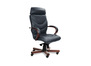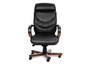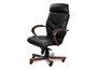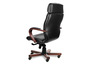 Кресло для руководителя LEEDS WOOD A кожа+кож.зам. №38311 - высота спинки: 74 см, высота от пола до сиденья: 50-57 см, диаметр крестовины: 72 см, ширина спинки: 53 см, объем: 0,37 м3, вес: 25 кг, механизм качания без фиксации, регулировка жесткости качания по весу сидящего, ограничения по весу: 150 кг, основание: дерево, каркас: немонолитный, подголовник, подлокотники, поясничный упор, регулировка по высоте, резиновые колеса для паркета, в наличии в Южно-Сахалинске.